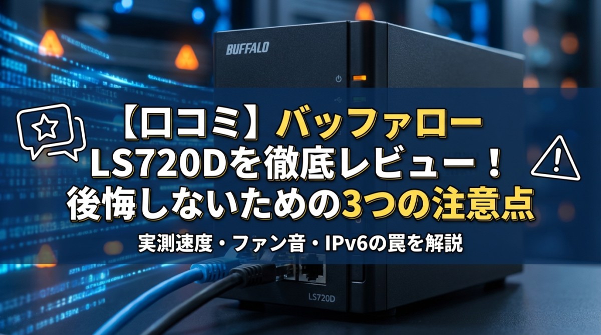 バッファロー LS720Dは、44,800円という価格で4TBの大容量と2.5GbEを搭載した優秀なNASです。 しかし、購入後に「こんなはずじゃなかった」と後悔しないために、知っておくべき注意点があります。