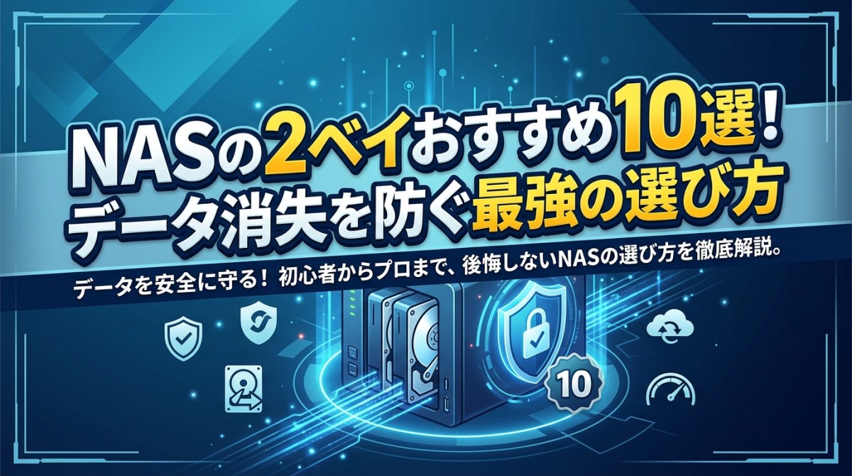 本記事では、初心者でも簡単に扱える完成品から、動画編集にぴったりな高速モデルまで、おすすめの2ベイNASを厳選しました。